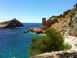 Profitez d’un accès direct à la plage de Sausset-les-Pins, où le bleu profond de la Méditerranée rencontre la douceur ombragée des pinèdes.
