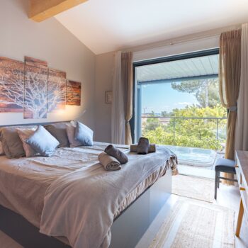 La suite séduit par son espace généreux et son atmosphère élégante, idéale pour un séjour placé sous le signe du confort et de la détente. Avec sa terrasse privative ouverte sur une vue imprenable sur la mer, elle invite à savourer des moments uniques dans un cadre d’exception. Son accès direct au jardin paysager et à la piscine complète l’expérience, faisant de cette suite une adresse idéale pour profiter pleinement d’un séjour inoubliable en bord de mer, avec son spa privatif couvert sur la terrasse.